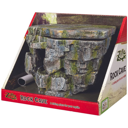 The Zilla Rock Cave provides an ideal hiding place for all types of reptiles, with a realistic appearance and texture and an included black window cling that provides animals with a sense of security. The cave is lightweight, durable, and attaches to the terrarium wall with a powerful suction cup.