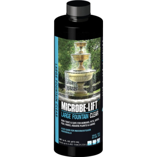 Specially formulated for larger water fountains and for indoor and outdoor waterfalls. Will help ensure clear, sparkling water that keeps water filters and pumps free from organic debris. Safe for birds, fish, aquatic wildlife, humans, pets, aquatic plants and lawns. All natural ingredients. Biodegradable and nontoxic. 16 oz.