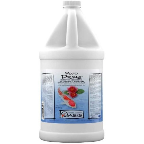 Water Garden Oasis Pond Prime completely conditions your pond water, removing chlorine and chloramine, and detoxifying harmful ammonia and nitrite. This concentrated formula also helps neutralize heavy metals and stimulates your fishes' natural slime coats.